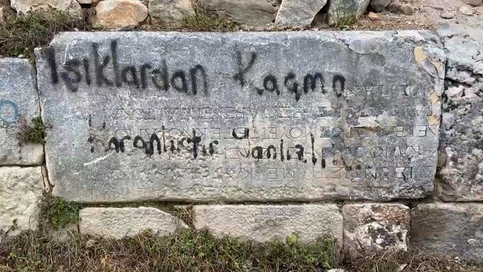Bitinya, Roma, Selçuklu ve Osmanlı medeniyetlerine ev sahipliği yapan tarihî surlara kimliği belirsiz kişi ya da kişilerce sprey boyalarla yazılar yazıldı. UNESCO dünya kültürel mirası geçici listesinde yer alan İznik’in 2 bin yıllık surlarına kimliği belirsiz kişi ya da kişiler tarafından sprey boya ile çeşitli yazılar yazıldı. Surlardaki yazıları görenler, bu duruma tepki gösterip, polis ekiplerine haber verdi. Olay yerine gelen ekipler, çevredeki güvenlik kameralarının kayıtlarını inceleyerek şüphelileri belirlemek için çalışma başlattı.(Özel) İznik’te tarihe saygısızlık