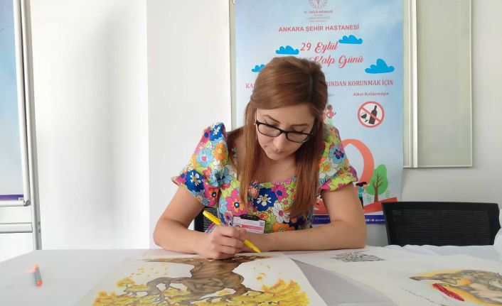 On iki yıldır hemşirelik yapan ve bunun yanı sıra küçüklükten beri severek uğraştığı resim sanatını hobi olarak sürdüren Mehtap Pelin Demirci, Ankara Şehir Hastanesi Kadın Doğum Hastanesi’nde çalışıyor. Kalp Damar ve Cerrahi bölümünde isteyerek ve severek çalıştığını dile getiren hemşire Demirci, kalpten yola çıkarak birçok resim çizdi. Çizdiği resimlerden mini bir de sergi oluşturan Demirci, resim sanatı ile amatör olarak uğraştığını, ancak profesyonel şekilde de eğitim almak istediğini kaydetti. Hemşire Mehtap Pelin Demirci, “Çocukluğumdan beri resim yapmayı hep çok sevmiştim. İlkokulda da hep böyle özel bir alan ayırırdı öğretmenlerim. Çok yetenekli olduğumu düşünmüyorum. Ama resim yapmanın bende çok özel bir yeri var ve benim için terapi gibi. O zamandan beri çiziyorum, çok çaba sarf ediyorum. Eğitim almadım ama sürekli çalışıyorum, videolar izliyorum ve amatör bir şekilde çalışıyorum. Tabi Kalp Damar Hastanesine geçtikten sonra da kalbin bende önemli bir yeri vardı. Bununla birlikte mesleğim ve yaptığım sanatı birleştirme şansım oldu” şeklinde konuştu.