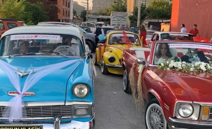 (ÖZEL) Klasik otomobillerle nostaljik düğün konvoyu