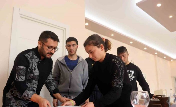 Kayseri’de İstiklal Özel Eğitim Mesleki Eğitim Okulu’nda eğitim gören servis bölümü öğrencilerine garsonluk eğitimi verildi.