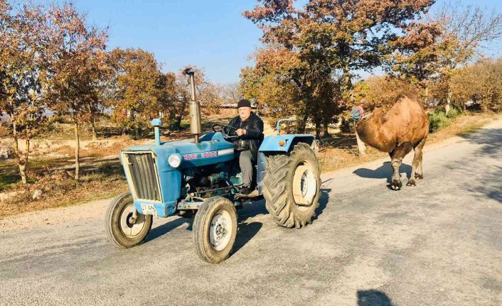Çanakkale’nin Çan ilçesinde güreş devesi sahibi Sefer Taşkın, traktörü ile devesini Kazdağları’nda güreşlere hazırlıyor. Taşkın, devesine her gün 10 kilometrelik antrenman yaptırıyor.