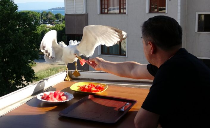 Kartal’da yaşayan Hasan Şengün, yaklaşık 10 yıldır oturduğu evinin balkonuna gelen martılarla beraber yemek yiyor. Şengün, hemen hemen her öğününde balkonuna misafir ettiği martılara yiyecekleri kendi tabağında ikram ediyor.