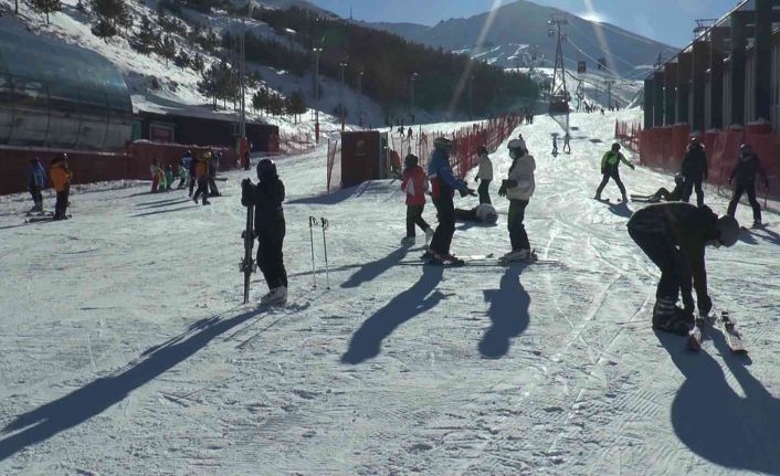 Kar kalınlığının bir metreye yaklaştığı Palandöken Kayak Merkezinde yaşanan yoğunluk renkli görüntüler oluşturdu.