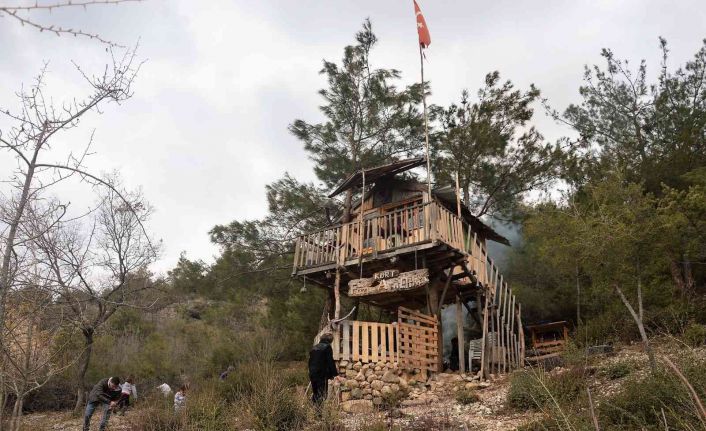 Yaz-kış hafta sonlarını ağaç evde geçiriyor