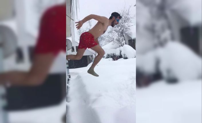 Samsun’da yağan kar etkisini ilçelerde daha çok hissettirirken bazı vatandaşlar karın keyfini farklı şekilde çıkardı. 2 kardeş evlerinin penceresinden şortla kara balıklama atlayarak soğuk havaya meydan okudu.