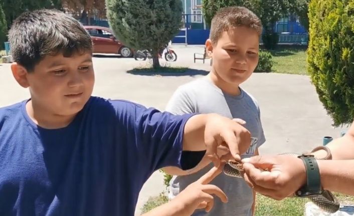 Parktaki yılanı elleriyle yakaladı çocuklara sevdirdi
