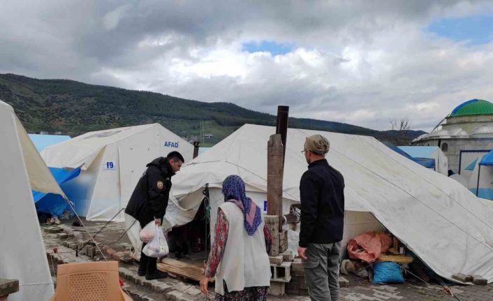 Kahramanmaraş’ta görev yapan polis ekipleri hazırladıkları Ramazan kumanyalarını çadır çadır gezerek depremzede vatandaşlara dağıttı.