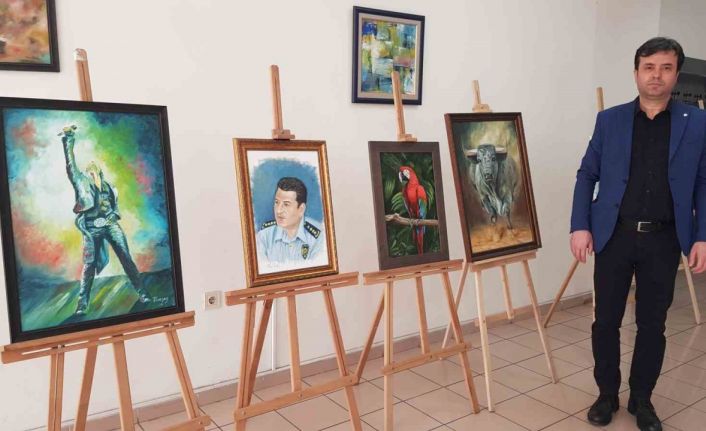Karabük’te, 21 yıllık polis memuru Turgay Tiryaki tarafından yapılan yağlı boya çalışmalarının yer aldığı sergi vatandaşların beğenisine sunuldu.