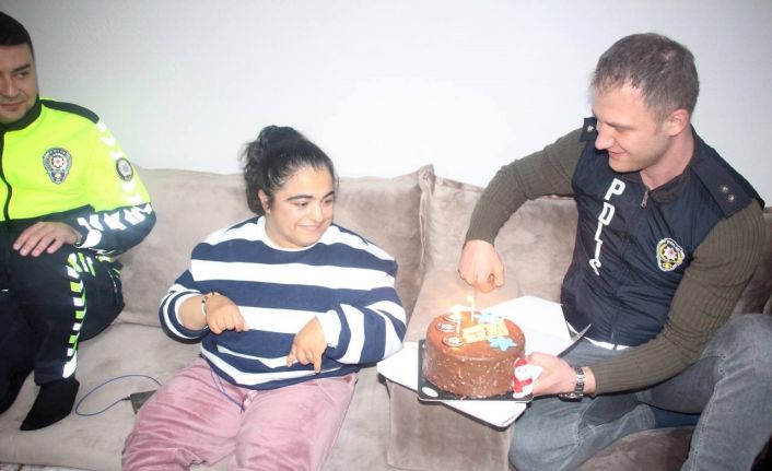 Şanlıurfa Ceylanpınar İlçe Emniyet Müdürlüğü’nde görev yapan polisler, engelli Enise Akmur’a doğum günü sürprizi yaptı. Yanlarına aldıkları pasta ile genç kızın Selahaddin Eyyübi Mahallesi’ndeki evine giden polis ekipleri, kapıda mumları yakıp içeri girdi. ’İyi ki doğdun Enise’ diyerek salona giren polisleri karşısında gören genç kız, büyük bir heyecan ve mutluluk yaşadı.