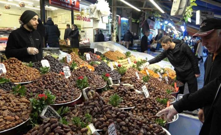 Ramazan ayı ile özdeşleşmiş hurma tezgahta yerini aldı. Çarşı pazara akın eden insanlar yoğunluk oluşturdu.