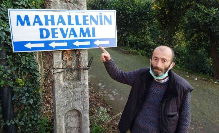 Rize’de mahalle sakinlerinin ısrarı üzerine yola asılan ‘Mahallenin devamı’ tabelası görenleri güldürüyor.