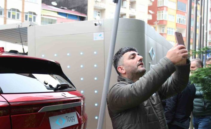 Türkiye’nin yerli ve milli arabası Togg, Rize’de vatandaşların beğenisine sunuldu. Togg’u incelemek isteyen vatandaşlar uzun kuyruklar oluşturdu.