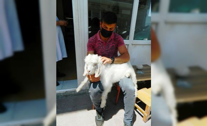 Sahibinden ayrılmayan yavru keçi görenlerin yüreğini ısıtıyor