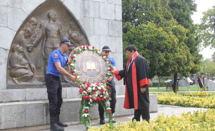 Adli yıl açılışı dolayısıyla Atatürk Anıtı’nda çelenk sunma töreni yapıldı. Törende ilk olarak Samsun Cumhuriyet Başsavcısı Mehmet Sabri Kılıç, başsavcılık adına anıta çelenk sundu. Daha sonrasında ise Bölge Adliye Mahkemesi Cumhuriyet Başsavcısı Fahri Gülay, Bölge İdare Mahkemesi Başkanı İshak Sağır, Samsun Baro Başkanı Pınar Gürsel Yıldıran ve Samsun Noterler Odası Başkanı Türkay Tezir’in anıta çelenk sunmasının arından saygı duruşunda bulunuldu ve İstiklal Marşı okundu.