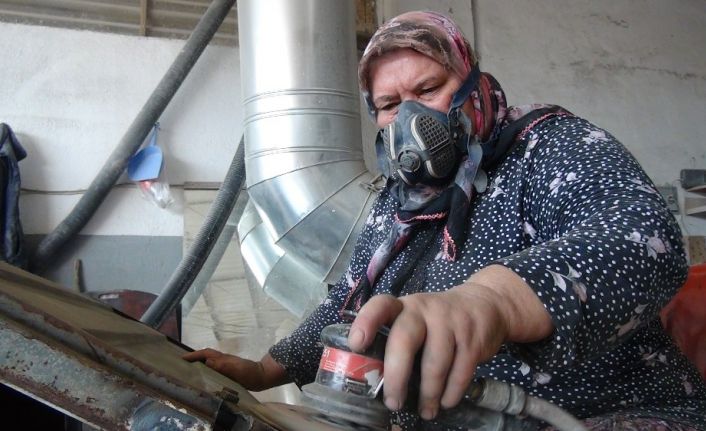 Serik ilçesinde yaşayan Meryem Yılmaz (54), sanayide oto boyacı dükkanı olan eşine, ‘bu işi ben de yapabilirim’ diyerek talepte bulundu. Yaklaşık 7 yıldır otomobil kaportalarını spiral makinesiyle zımparalayan, boyamaya hazır hale getiren Yılmaz, eşi ve oğluyla birlikte mesai yapıyor. Yılmaz’ı dükkanda görenler ise şaşkınlıklarını gizleyemeyip, hatıra fotoğrafı çektiriyor.
