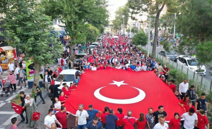 Şanlıurfa’da 15 Temmuz Demokrasi ve Milli Birlik Günü düzenlenen çeşitli etkinliklerle kutlandı. 15 Temmuz 2016 gecesi şehit olan Şanlıurfalıların mezarını ziyaretle başlaya kutlamalar, Cuma namazı sonrası mevlit okunmasıyla devam etti. Şehit ailelerinin ziyaretinin ardından akşam saatlerinde kortej yürüyüşü gerçekleştirildi. Abide kavşağında bir ayara gelen protokol ve vatandaşlar, programın düzenleneceği Rabia Meydanına kadar yürüdü. Yürüyüşe vatandaşlar bayrak sallayarak eşlik ederken kortejin önünde ise şehitlerin fotoğraflarının yer aldığı pankart açıldı. Dev Türk Bayrağının da açıldığı yürüyüş Rabia Meydanındaki saygı duruşu ve İstiklal Marşının okunmasıyla son buldu. Rabia Meydanındaki programda ise akşam namazının ardından toplu namaz kılındı. Namazın ardından dev ekranda gösterilen 15 Temmuz gecesi şehit olan Şanlıurfalı 5 kahramanın hayatın yer aldığı slayt gösterisi herkesi duygulandırdı. Darbe belgeselinin de gösterildiği programda Cumhurbaşkanı Recep Tayyip Erdoğan’ın 15 Temmuz ile ilgili videolu mesajı dev ekranda izletildi.