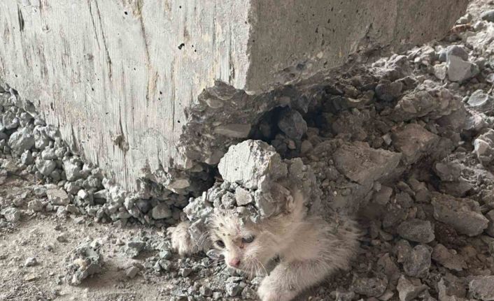 Şanlıurfa’da inşaattaki kalıbın içerisine giren yavru kedinin üzerine beton döküldü. Kalıp söküldükten sonra fark edilen yavru kedi, itfaiye ekipleri tarafından kurtarıldı.