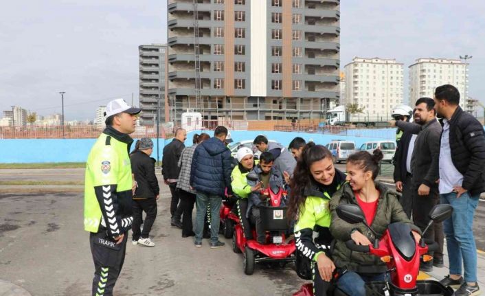 Trafik polislerinin eşlik ettiği eğitim parkındaki etkinlikte direksiyon başına geçen engelli bireylerin mutlulukları ise yüzlerine yansıdı. Pasta kesen engelli bireylerin etkinliği hatıra fotoğrafının çekilmesiyle son buldu.