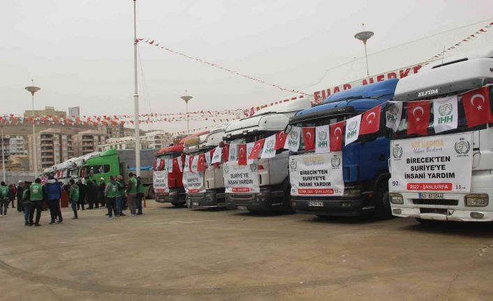 Şanlıurfa’dan Suriye’nin çeşitli bölgelerindeki ihtiyaç sahiplerine 13 tır insani yardım malzemesi, dualarla gönderildi.