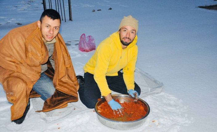 Şanlıurfalılar kar üstünde su yerine karla çiğköfte yoğurdu