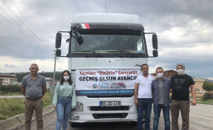 Samsun Akademik Odaları Birlikteliği de sel felaketi yaşayan Ayancık ilçesine su ve ekmekten oluşan yardım malzemesi gönderdi. Bir tır dolusu yardım malzemesi, Ayancık’a ulaştırılmak üzere Samsun’dan yola çıktı.