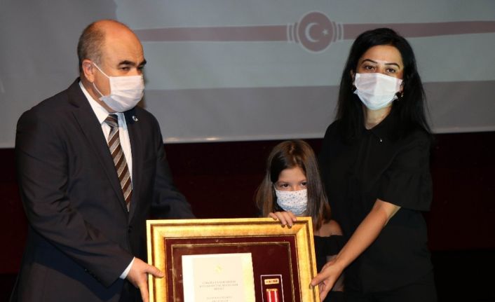 Şehit babasının devlet övünç madalyasını 7 yaşındaki kızı aldı