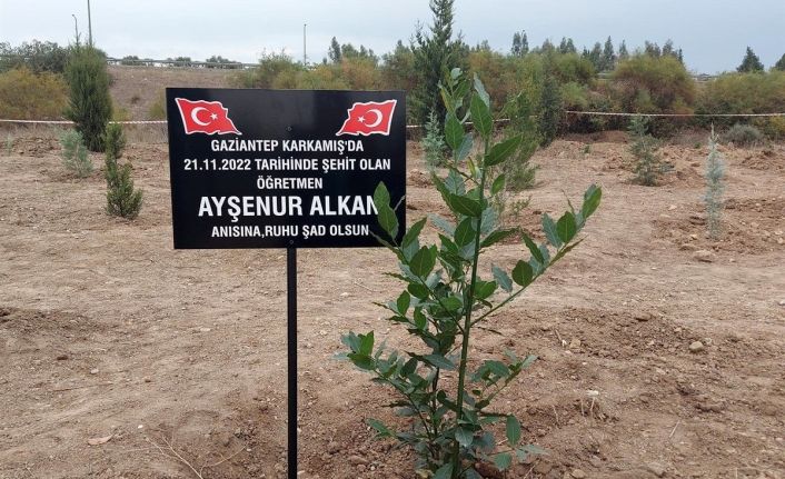Gaziantep’in Karkamış ilçesinde terör örgütü PKK/YPG’nin roketli saldırısında şehit olan Sınıf Öğretmeni Ayşenur Alkan adına 70 fidan dikildi.