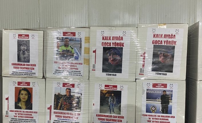 Şehitlerin fotoğraflarının yer aldığı yardım kolileri duygulandırdı