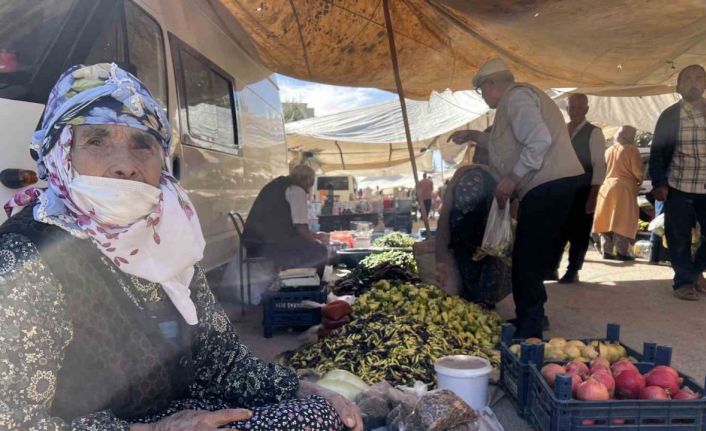 Kahramanmaraş’ta 90 yaşındaki bir kadın kendi bahçesinde ürettiği sebze ve meyveleri semt pazarında satarak geçimini sağlıyor.