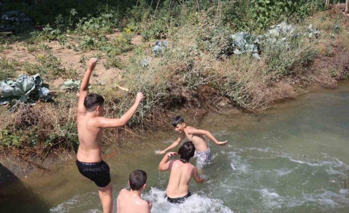 Kasaplar Mahallesi’nde bulunan sulama kanalı çocukların yüzme havuzu oldu. Sıcaklardan bunalan çocuklar çareyi sulama kanalına girmekte buldu. Kanal içerisinde yüzerek hem serinleyen hem de eğlenen çocuklar, suyun keyfini çıkardı. Tehlikeli olmasına rağmen kanal üzerinde bulunan köprüden de suya atlayan çocuklar, adeta aquaparktaymış gibi eğlendi.