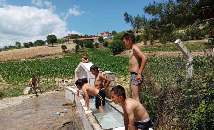 Çeşmeden akan suyun soğuk olduğunu belirten çocuklar, mahallelerinde yüzecek yer bulunmadığını söyledi. Çok sıcak olmasına rağmen suda üşüdüklerini belirten çocuklar, bu şekilde eğlendiklerini ifade etti.