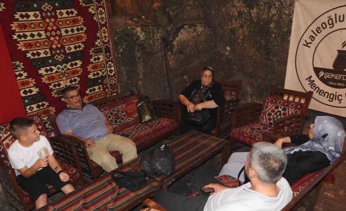 Hava sıcaklığının bazen 40 dereceyi bulduğu kentte, yerli ve yabancı turistler doğal serinliği nedeniyle mağaradaki kafeye geliyor.