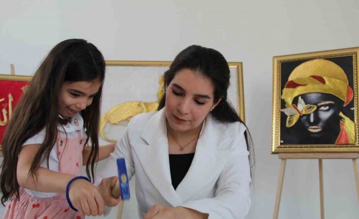 9 yıl önce mülteci olarak Türkiye’ye geldiğini söyleyen Roken Abdülbaki Taher, “Bir mülteci olarak yeni bir ülkeye geldikten sonra ilk düşündüğüm şey burada ne yapacağım, ne öğreneceğim ve kendim için neler yapabilirim oldu. Benim için önemli yerlerden olan Halk Eğitim Merkezine gittim. Bize meslekleri öğrettikleri için teşekkür ediyorum. Halk eğitim merkezinde bir çok sayıda elişi sanatı gördüm, iplerle yapılan, kağıtlarla yapılan, renklerle yapılan bu eserlerin arasında Filografi de vardır. Benim yaptığım da Filografi sanatıdır” dedi.