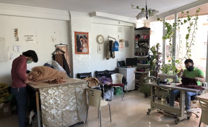Suriye’deki iç savaştan kaçarak 7 yıl önce aileleriyle birlikte Mardin’in Kızıltepe ilçesine yerleşen terzi kardeşler, kişiye özel bayan elbisesi dikiyor. Terzi kardeşler, Almanya’dan aldıkları siparişleri yetiştirmek için gece gündüz çalışıyor.