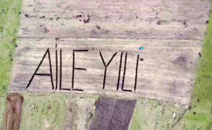 Ardahan’da Aile Yılının önemine dikkat çekmek isteyen çiftçi Fatih Doğruyol, traktörüyle tarlasına aile yılı yazarak konuya dikkat çekti.