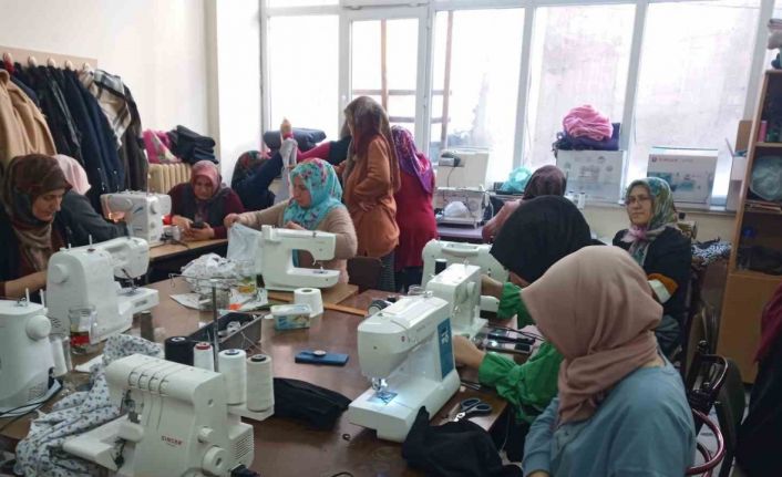 Ardahan’ın Posof İlçe Halk Eğitim Merkezi’nde düzenlenen terzilik kursuna katılan hanımlar, deprem bölgesindeki ihtiyaç sahipleri için pijama dikişine başladılar.