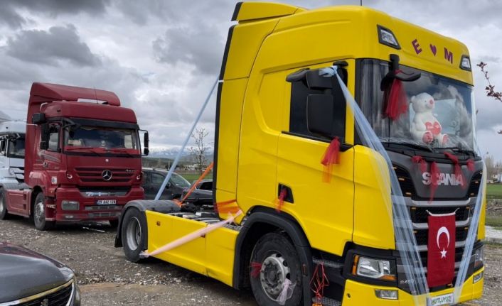 Tır şoförü aracını gelin arabası yaptı