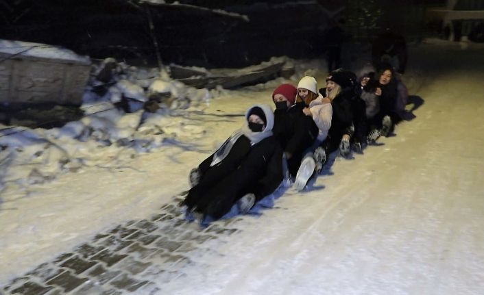 Tokat’ta kar yağışını fırsat bilen vatandaşlar gece saatlerinde mahalle aralarındaki rampa yollara adeta akın etti. Topçubağı mahallesinde ellerine naylon, poşet, leğen, tepsi alan vatandaşlar kaymak için bir biri ile yarıştı. Çocuk ve gençlerin yanı sıra yetişkinlerde buzlanan yolda kayarak eğlendi. Yokuş aşağı hızla kayanlar tehlikeye aldırış etmedi. Yaşanan kalabalık nedeni ile kazalar yaşandı. Kimi kayarak kaldırıma çarptı, kimileri ise önüne çıkanlara çarparak yerde yuvarlandı. Korku dolu anların yaşandığı kazalarda hafif şekilde yarılananlar oldu. Adrenalin dolu anlar yaşayan vatandaşlar uzun bir aradan sonra yağan karın tadını çıkartarak farklı bir heyecan yaşadıklarını dile getirdi.