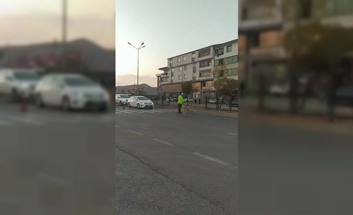 Bingöl’de trafik polisi, yolun karşısına geçmek isteyen köpek için trafiği durdurdu. O anlar izleyenlerin içini ısıttı.