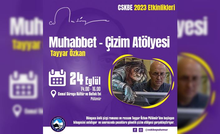 CSKBE 2023 etkinlikleri çerçevesinde 24 Eylül Pazar günü saat 14.00 ile 16.00 saatleri arasında Cemal Süreya Kültür ve Bellek Evi’nde dünya çizerleri listesinin ilk sıralarında yer alan ünlü çizgi romancı Tayyar Özkan’ın katılımıyla “Muhabbet-çizim” atölyesi düzenlenecek. Etkinlikte Özkan, Pülümür’den başlayıp dünyanın en tanınan çizerleri arasına girmekle devam eden hayat hikayesini dinleme şansı da olacak. Özkan’ın çizimlerinden örneklerin de yer alacağı etkinlikte atölye çalışması gerçekleştirilecek.