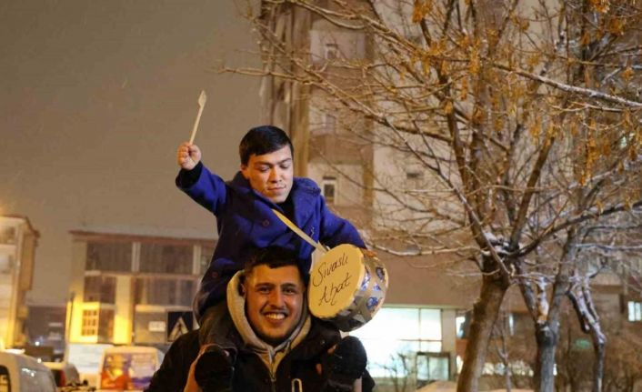 Sivas’ın sevilen siması 108 santimetre boyundaki Ahat Öztürk, Ramazan davulculuğuna başladı. Arkadaşının omzuna çıkarak çeşitli maniler söyleyen Ahat, küçük davuluyla vatandaşları sahura kaldırıyor.