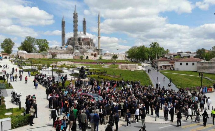 Selimiye Meydanı’nda gazetecilere açıklamada bulunan Edirne Valisi Hüseyin Kürşat Kırbıyık, Edirnelilerin Togg ile tanıştığını ve özel plakasıyla birlikte şehrin fetih edildiği plakayla beraber geçmişten geleceğe konseptiyle Selimiye’nin gölgesinde sergilendiğini söyledi. Selimiye’nin ecdadın bıraktığı muhteşem eserin gölgesinde günümüz teknolojisinin ulaştığı en üst zirvelerden birisi olan yerli ve milli teknolojisi Togg’un gurunu yaşadıklarını söyleyen Vali Kırbıyık, yoğun ilgi gösteren vatandaşlara teşekkür etti.