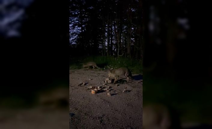Bursa’da bir vatandaş, Uludağ’dan inerken yol üzerinde olan tilkileri görünce yanında getirdiği ekmeklerle besledi. O anlar saniye saniye kaydedildi.