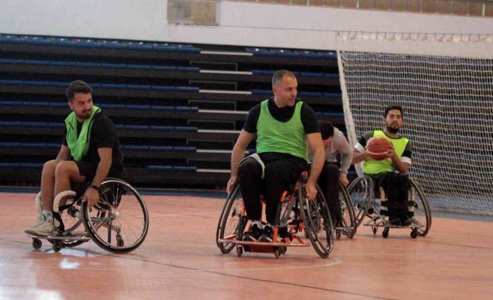 Kayseri’de Erciyes Üniversitesi (ERÜ) Spor Bilimleri Fakültesi öğrencileri, ‘Hayatı Paylaşmak İçin Engel Yok’ etkinliğinde tekerlekli sandalyeye oturarak, bedensel engelli sporcular ile basketbol oynadı.