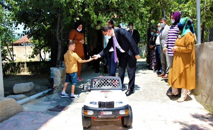 Amasya Valisi Mustafa Masatlı, 15 Temmuz şehidi Erdem Diker’in 6,5 yaşındaki oğlu Egehan’a akülü araba hediye etti.