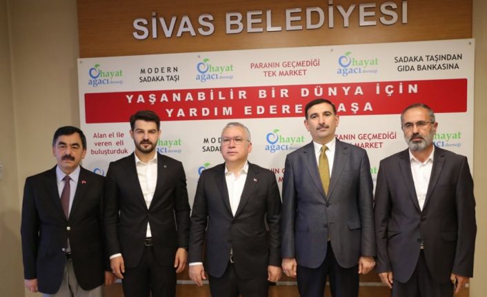 Sivas Valisi Dr. Yılmaz Şimşek, Sivas Belediyesi Hayat Ağacı Derneği bünyesinde faaliyet gösteren Gıda Bankasını ziyaret ederek, yardım kuruluşunun çalışmaları hakkında bilgi aldı. Vali Yılmaz Şimşek, Hayat Ağacı Derneğine kurban hissesi de bağışladı. Sivas Belediye Başkan Vekili Turan Topgül, Başkan Yardımcısı Ahmet Duman ile beraber gıda, giyim ve diğer bölümleri gezen Vali Şimşek, Sivas’ta market benzeri bir yardım kuruluşu olmasından dolayı memnuniyetini ifade etti. Hayat Ağacı Derneğinin, Türkiye’ye örnek bir yardım kuruluşu olduğunu vurgulayan Vali Şimşek, veren el ile alan elin birbirini görmediği bir uygulama ile ihtiyaç sahiplerinin market ortamında istediği ürünü seçip alabildiğini söyledi. Şimşek, derneğin kurulduğu günden bu yana yardım faaliyetlerinde görev yapan, katkısı olan idareci ve çalışanlar ile hayır sahiplerine teşekkür etti.