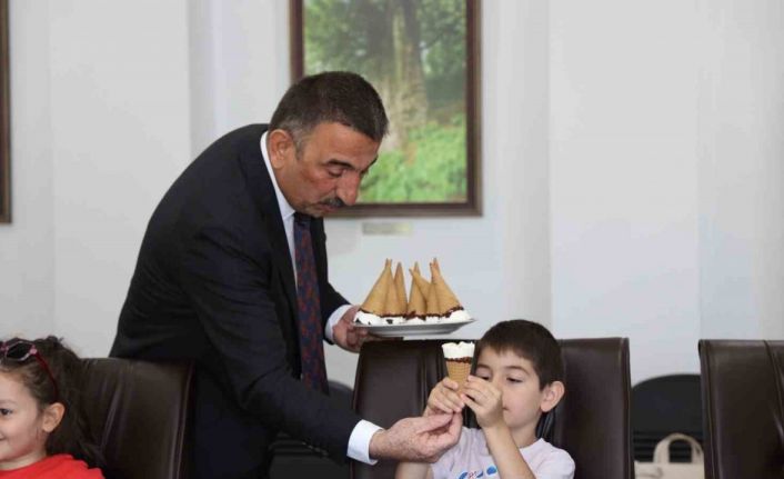 Zonguldak’ta "Valiyle tanışıp dondurma yemek istiyoruz" diyen çocuklar Zonguldak Valisi Osman Hacıbektaşoğlu ile bir araya geldi. Çocuklar tanışan Vali Hacıbektaşoğlu, miniklere elleriyle dondurma ikram etti.