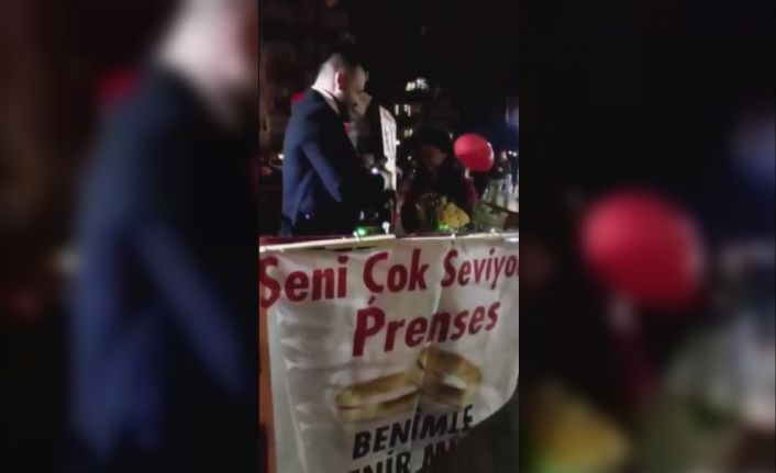 Antalya’nın Kepez ilçesi Varsak bölgesinde sevgilisine evlilik teklifi yapmak isteyen bir gencin ilginç yöntemi cep telefonu kameralarıyla kaydedildi. Vinci balonlarla süsleyip, fotoğraflarının yer aldığı ‘Seni seviyorum prenses. Benimle evlenir misin’ yazılı pankart asan genç, vincin sepetine binip kız arkadaşının evinin balkonuna yanaştı. Ardından sanatçı Hakan Altun’un ‘Benimle evlenir misin’ şarkısını kız arkadaşına dinleten genç adam, elindeki çiçekleri verdikten sonra kız arkadaşını da yanına alıp aşağıya indi. Burada kız arkadaşının önünde eğilip cebinden yüzüğü çıkaran genç ,evlilik teklinde bulundu. Oldukça şaşıran genç kız ise sevgilisinin teklifine ‘Evet’ cevabını vererek yüzüğü parmağına taktı.Vinçle sevgilisinin balkonuna dayanıp evlilik teklif etti