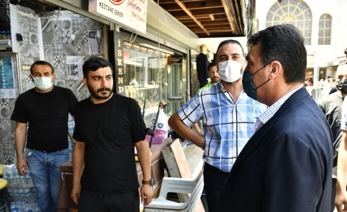 Osmangazi Belediye Başkanı Mustafa Dündar, tarihî çarşı ve hanlar bölgesinde meydana gelen yangında iş yeri zarar gören esnafa geçmiş olsun ziyaretinde bulundu.