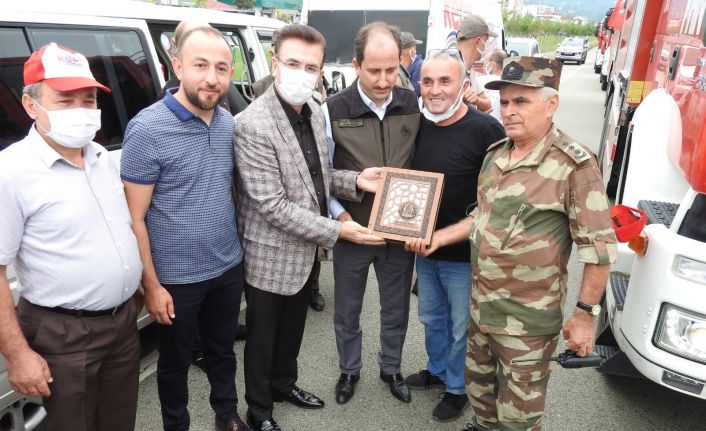 Trabzon Orman Bölge Müdürü Emin Yılmaz ise “Yangın bölgesinden Azeri kardeşlerimiz ülkelerine geri dönüş yapıyorlar. Bizde burada hem Trabzon olarak hem de Vakfıkebir olarak teşekkür bazında hediye vererek uğurlamak istedik” diye konuştu.